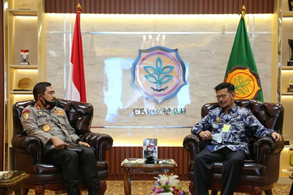 Kehadiran Kabaharkam Polri dan rombongan disambut hangat oleh Mentan Syahrul Yasin Limpo. Kepada Komjen Pol Agus Andrianto ia menjelaskan saat ini Kementan sedang fokus mengantisipasi kelangkaan pangan akibat pandemi Covid-19.