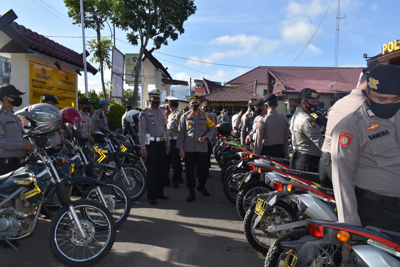 Kapolres Tapanuli Selatan AKBP Roman Smaradhana Elhaj memastikan kesiapan Ranmor dan para personil dalam menghadapi Pilkada Bupati Tapanuli Telatan tahun 2020.(BEDAHNEWS.com)