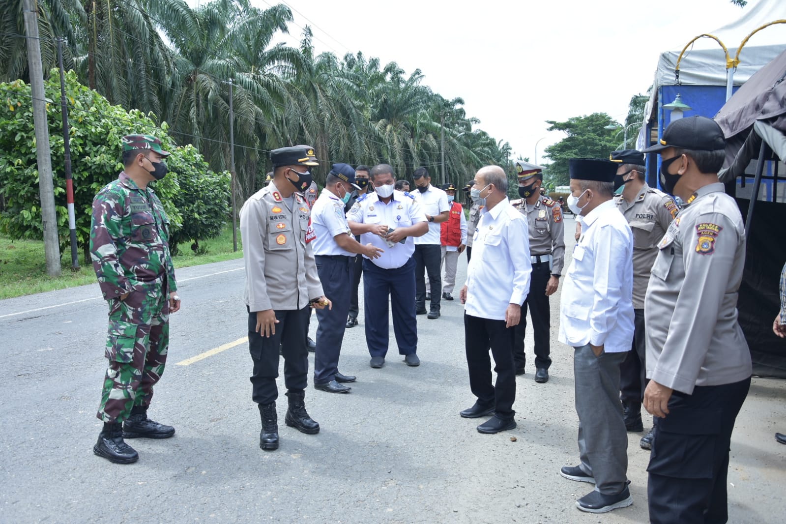 Tampak dalam kegiatan tinjauan Posko ini Ketua DPRK Aceh Tamiang, Suprianto ST., Dandim 0117 / Atam, Letkol Cpn Yusuf Adi Puruhita, Asisten Pemerintahan Drs.Amiruddin Y, Kepala Dinas Perhubungan Drs.Syuibun Anwar, Kasatpol PP & WH Drh. Asma’I, Kabag Humas Setdakab Aceh Tamiang Agusliayana Devita S.STP MSi yang sekaligus Juru Bicara Satgas Covid-19 dan Kasat Lantas Polres Aceh Tamiang AKP Handoko Suseno, SIK.