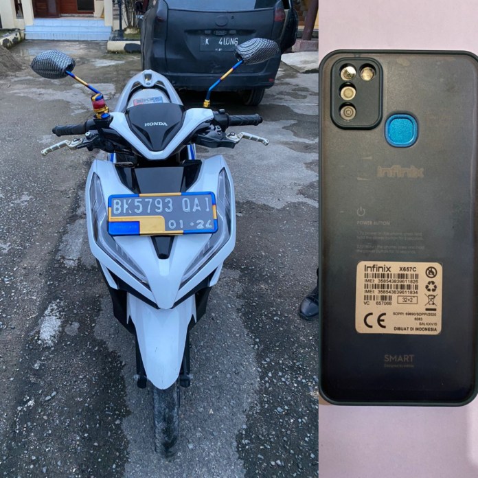 Dari tangan pelaku berhasil diamankan barang bukti Handphone Merk Infinix smart 5 dan Honda vario 125 warna putih.