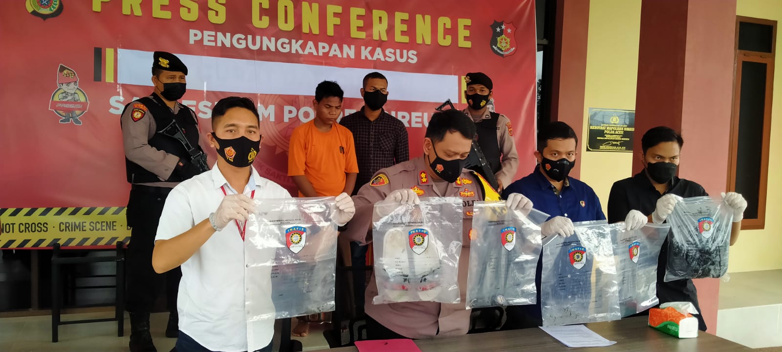 Kapolres Bireuen, AKBP Mike Hardy Wirapraja SIK MH didampingi Kasatreskrim, AKP Arief Sukmo Wibowo SIK saat konferensi pers di mapolres setempat, Kamis (5/5/2022) sore menjelaskan, setelah menerima informasi terkait aksi penemuan mayat itu, pihaknya langsung meluncur ke lokasi dan melakukan olah TKP.