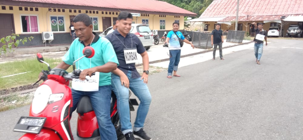 Pada reka ulang yang digelar Mapolres, AR alias Saman menceritakan kronologi kejadian sebenarnya. Ternyata, ia tidak memukul ibu kandungnya sebagai mana yang dilaporkan ayah tirinya.