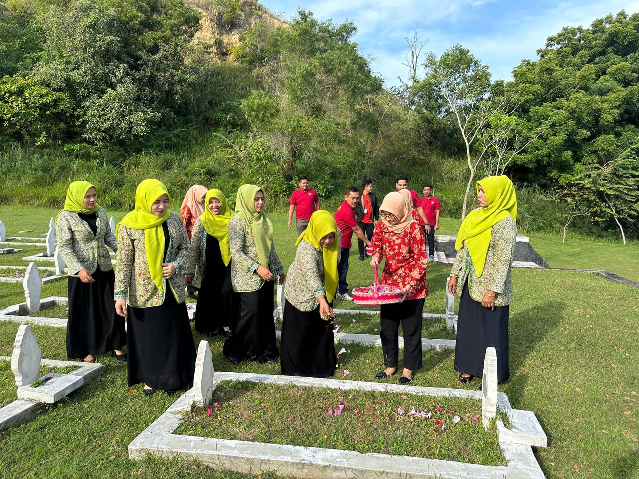 Dengan penuh khidmat, tabur bunga diawali dengan Apel Kehormatan yang dipimpin oleh Kasubsi Bimbingan Klien Dewasa Bapas Lhokseumawe, Asnati. Kemudian dilanjutkan dengan pemberian doa kepada arwah para pahlawan dan ditutup dengan menabur bunga ke seluruh makam.