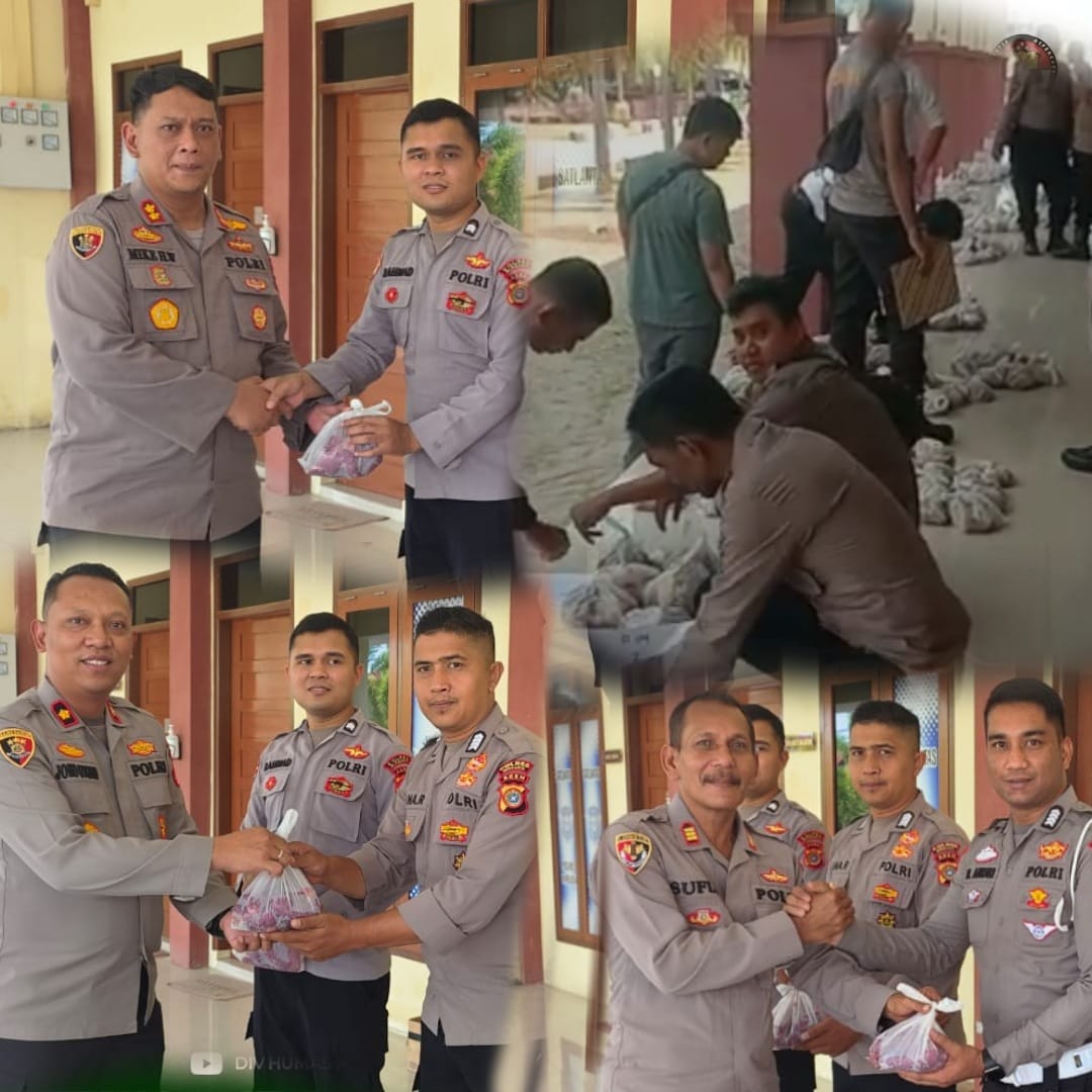 BIREUEN, ACEH, BEDAHNEWS.com – Kapolres Bireuen AKBP Mike Hardy Wirapraja, S.I.K., M.H., berbagi daging meugang kepada personel Polres, Polsek jajaran, PHL, wartawan, masyarakat yang ada disekitar Mapolres, Senin (20/3/2023).