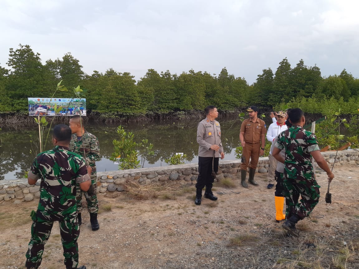 Lanjut Kapolres, penanaman mangrove tersebut, bagian dari bentuk tanggung jawab untuk melestarikan alam, menjaga ekosistem, dan langkah mitigasi bencana.