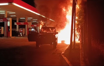 Petugas SPBU coba memadamkan api yang terus membesar dengan racun api, namun sia sia api terus membakar mobil Taft hingga hangus, membuat suasana semakin mencekam akibat adanya suara ledakan.