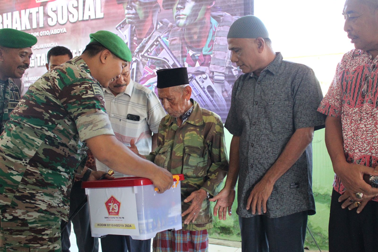 Pada Baksos tersebut, Kodim 0110/Abdya juga memberikan santunan paket Sembako kepada 5 orang Warakawuri dan 10 purnawirawan.