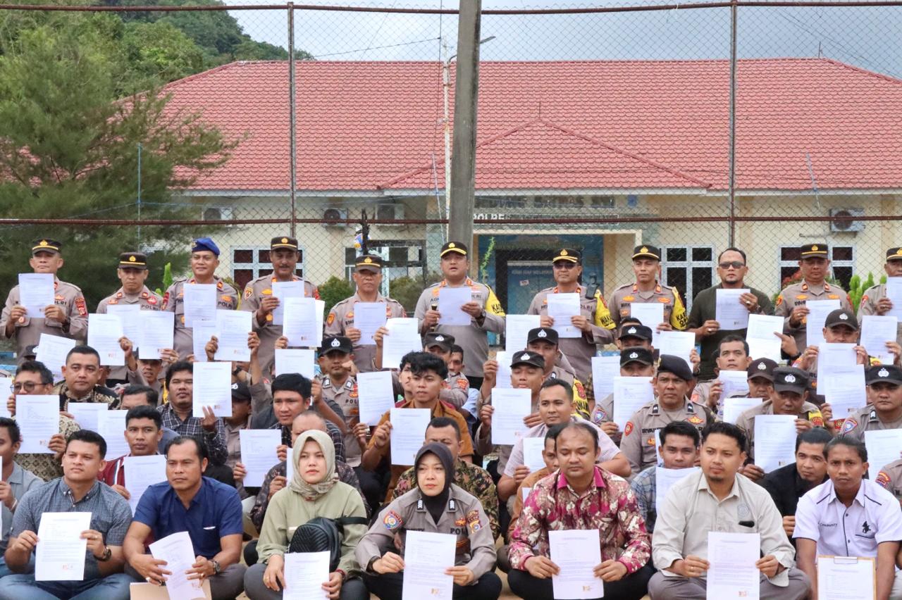 ABDYA, BEDANEWS.com – Polres Aceh Barat Daya (Abdya) menegaskan komitmennya untuk tetap netral dalam perhelatan Pilkada 2024, Kapolres Abdya, AKBP Agus Sulistianto SIK M.H menyampaikan bahwa seluruh personel Polres Abdya telah menandatangani surat pernyataan bermaterai yang menyatakan komitmen mereka untuk menjaga netralitas, Selasa (12/11/2024).