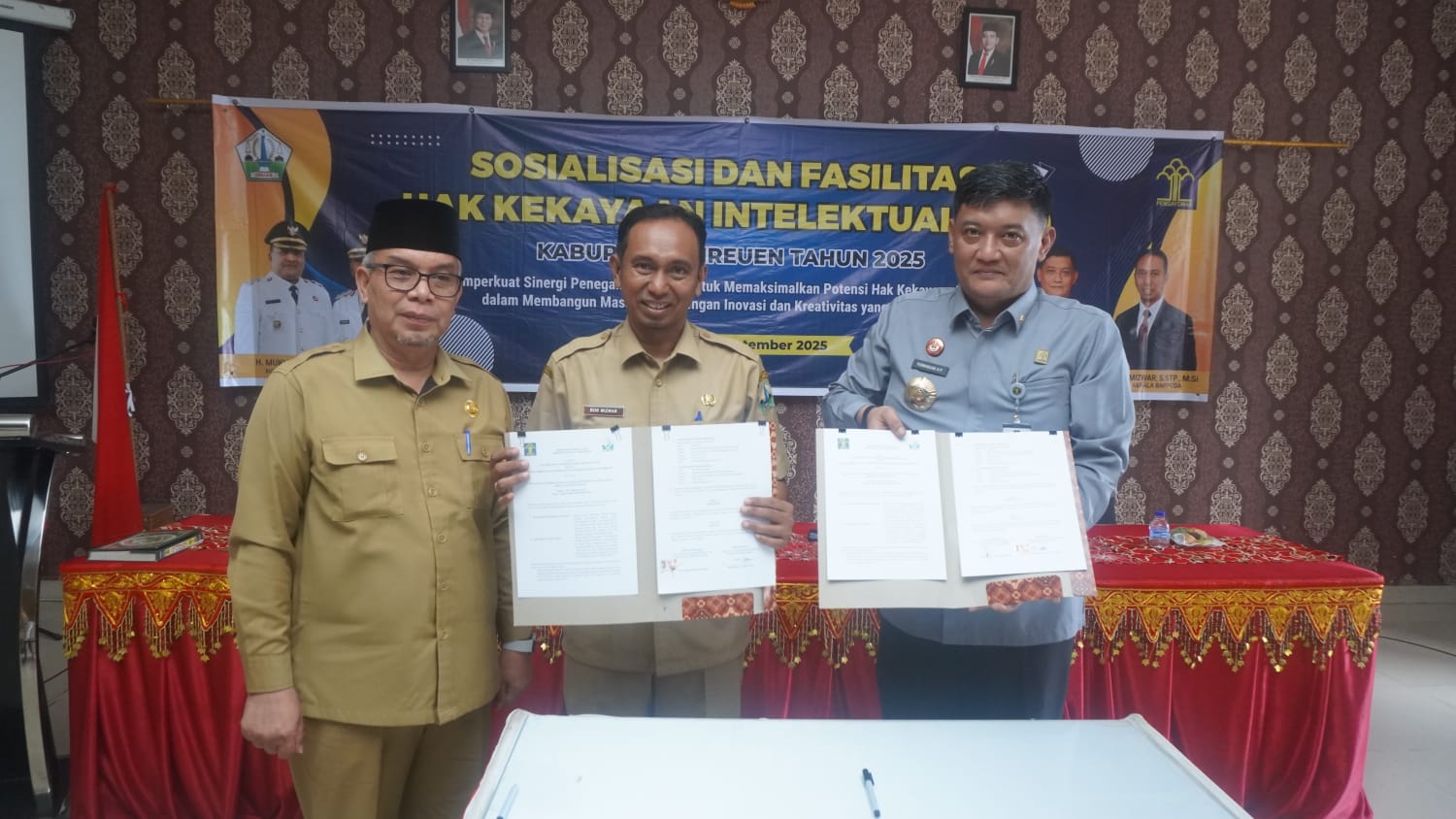 BIREUEN, BEDAHNEWS.com – Pemerintah Kabupaten Bireuen melalui Badan Perencanaan Pembangunan Daerah (Bappeda) menggelar Sosialisasi dan Fasilitasi Hak Kekayaan Intelektual (HKI) Tahun 2025, Selasa (30/9/2025), di Oproom Setdakab Bireuen. Kegiatan ini menjadi langkah strategis untuk meningkatkan kesadaran hukum sekaligus mendorong pertumbuhan ekonomi daerah.