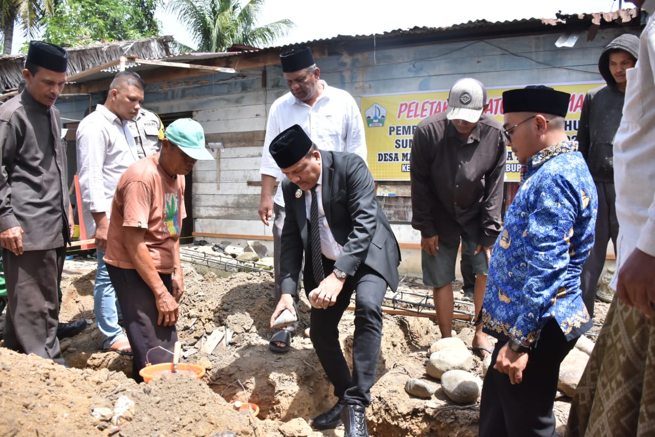 BIREUEN, BEDAHNEWS.com – Bupati Bireuen, H. Mukhlis, secara resmi meletakkan batu pertama pembangunan dua unit rumah bantuan bagi warga kurang mampu di Gampong Matang Geulumpang Dua Meunasah Dayah, Kecamatan Peusangan, Rabu (1/10/2025) pagi.
