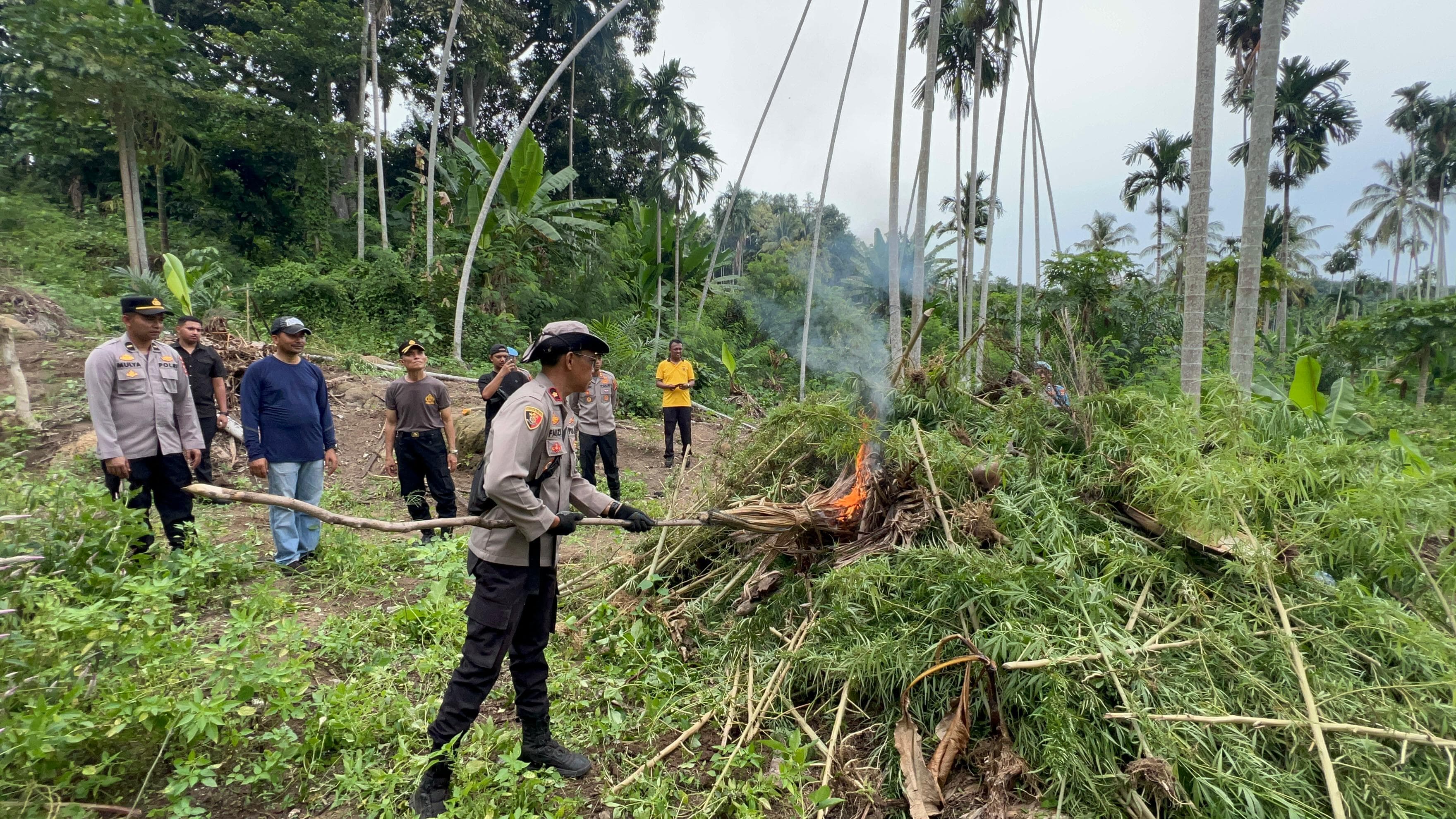 “Sebanyak 4.195 batang dimusnahkan di lokasi, sementara lima batang kami bawa ke Polres sebagai barang bukti untuk uji laboratorium,” tambahnya.