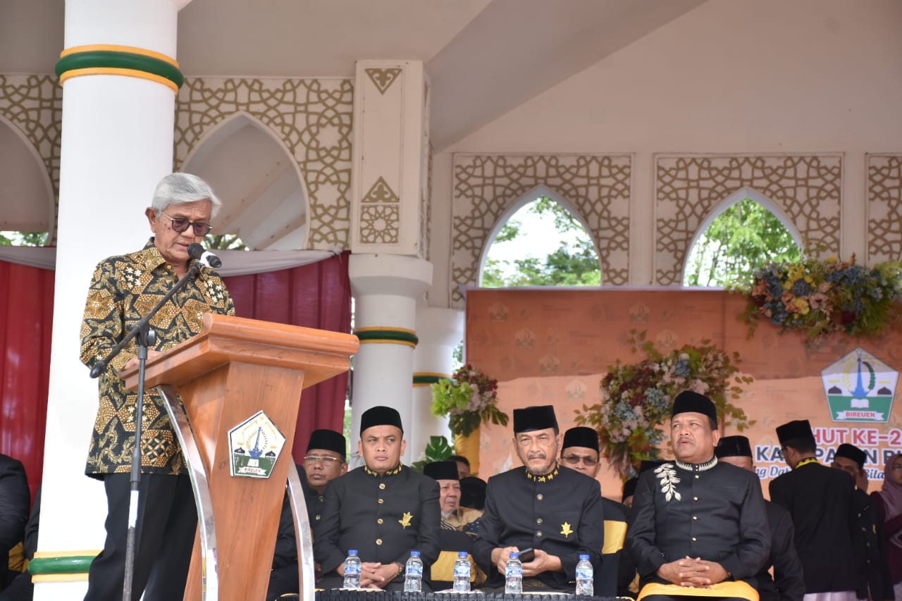 Salah satu momen penting dalam peringatan kali ini adalah penyampaian pesan dari tokoh pendiri Kabupaten Bireuen, H. Subarni, yang turut hadir mewakili para inisiator pembentukan kabupaten. Dalam pidatonya, ia mengingatkan kembali tujuan utama pemekaran Bireuen, yakni mempercepat pembangunan dan meningkatkan kesejahteraan rakyat.