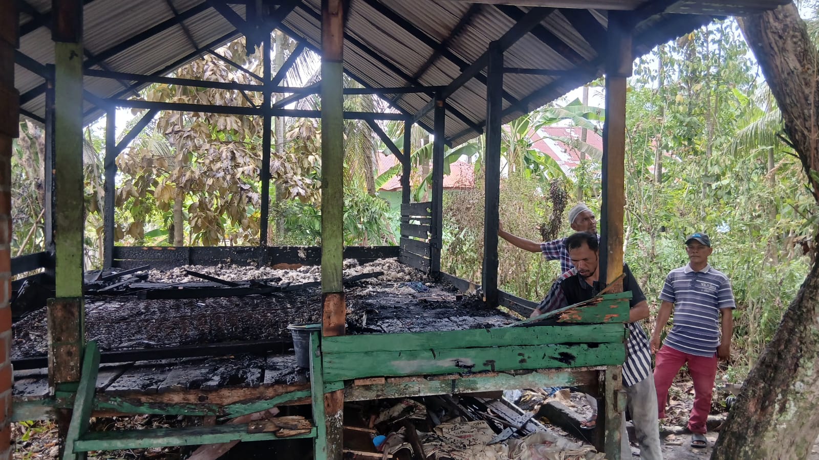 BIREUEN, BEDAHNEWS.com – Sebuah balai pengajian yang juga dijadikan tempat tinggal oleh seorang warga di Gampong Pineung Seribee, Kecamatan Samalanga, Kabupaten Bireuen, hangus terbakar pada Rabu siang (15/10/2025) sekitar pukul 14.16 WIB.