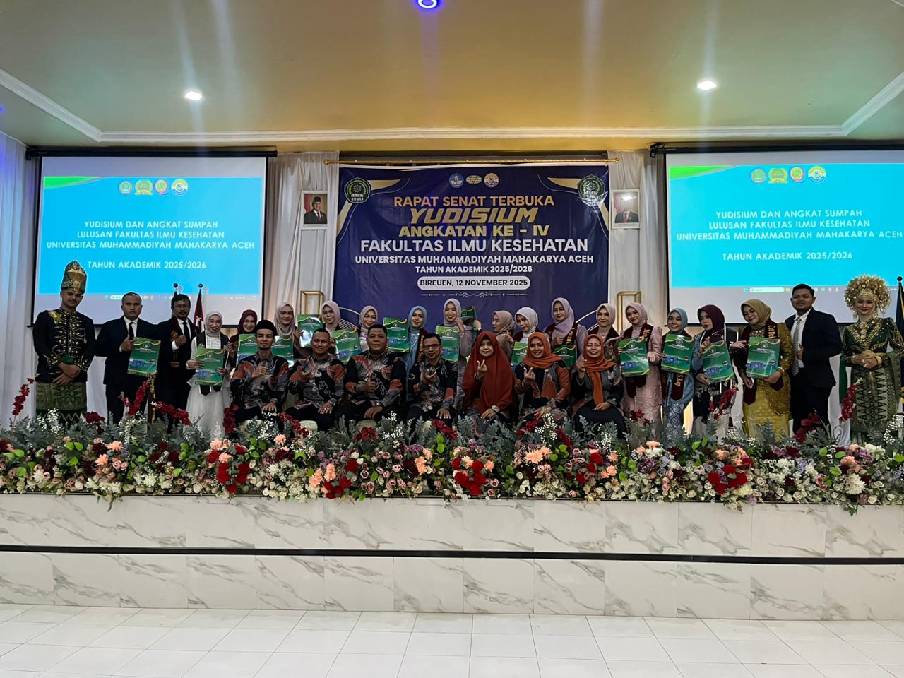 BIREUEN, BEDAHNEWS.com – Fakultas Ilmu Kesehatan (Fikes) Universitas Muhammadiyah Mahakarya (UMMAH) Aceh kembali mencetak lulusan baru. Sebanyak 33 mahasiswa resmi diyudisium pada prosesi Yudisium Angkatan ke-IV yang berlangsung di Aula Wisma Bireuen, Rabu (12/11/2025).