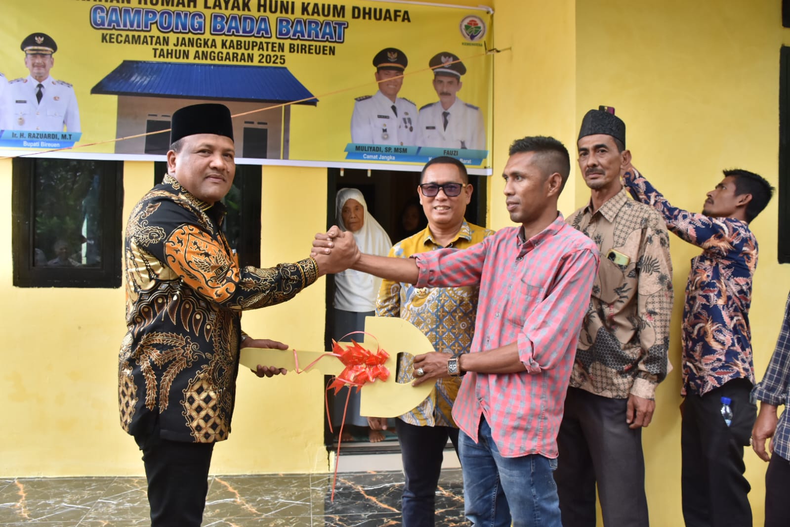 BIREUEN, BEDAHNEWS.com – Bupati Bireuen, H. Mukhlis, menyerahkan satu unit rumah bantuan yang dibangun melalui Dana Desa (DD) kepada seorang warga kurang mampu di Kecamatan Jangka. Penyerahan simbolis berlangsung pada Kamis pagi, 20 November 2025.