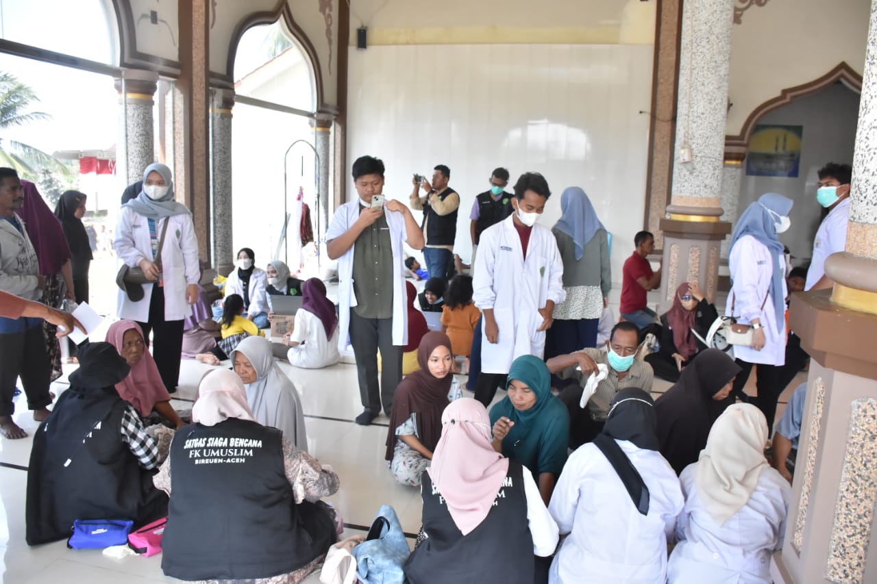 Tak hanya pelayanan medis, FK Umuslim dan IDI Bireuen juga menyalurkan bantuan logistik berupa sembako untuk membantu memenuhi kebutuhan dasar masyarakat yang masih berada di pengungsian.