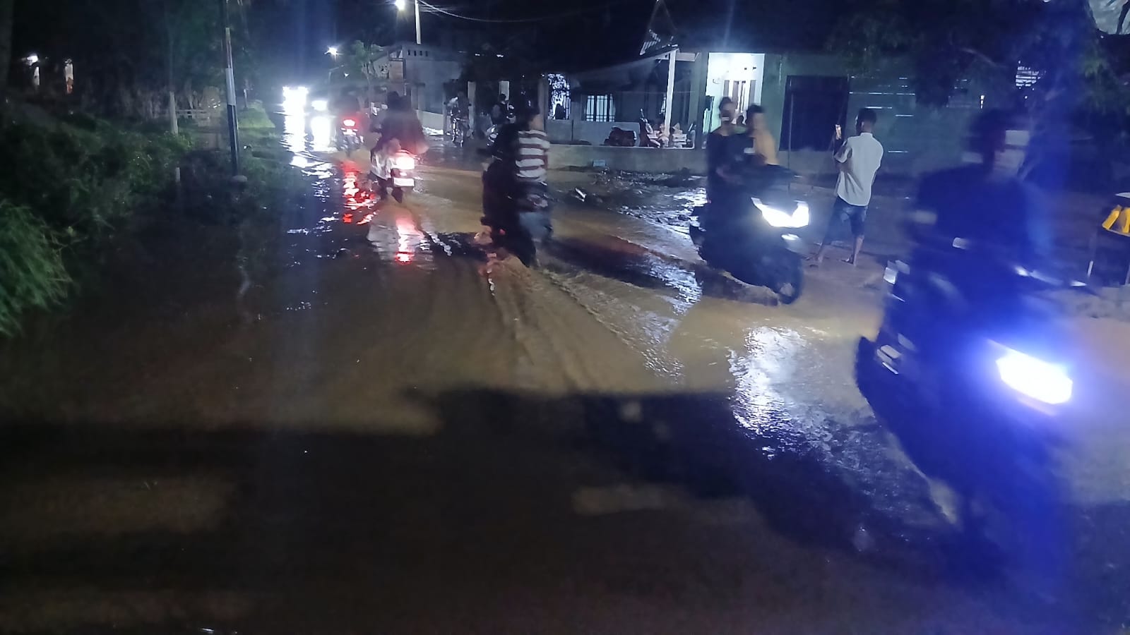Beruntung, banjir hanya merendam jalan desa dan pekarangan rumah warga, belum sampai masuk ke dalam rumah. Menjelang tengah malam, genangan air dilaporkan mulai berangsur surut.