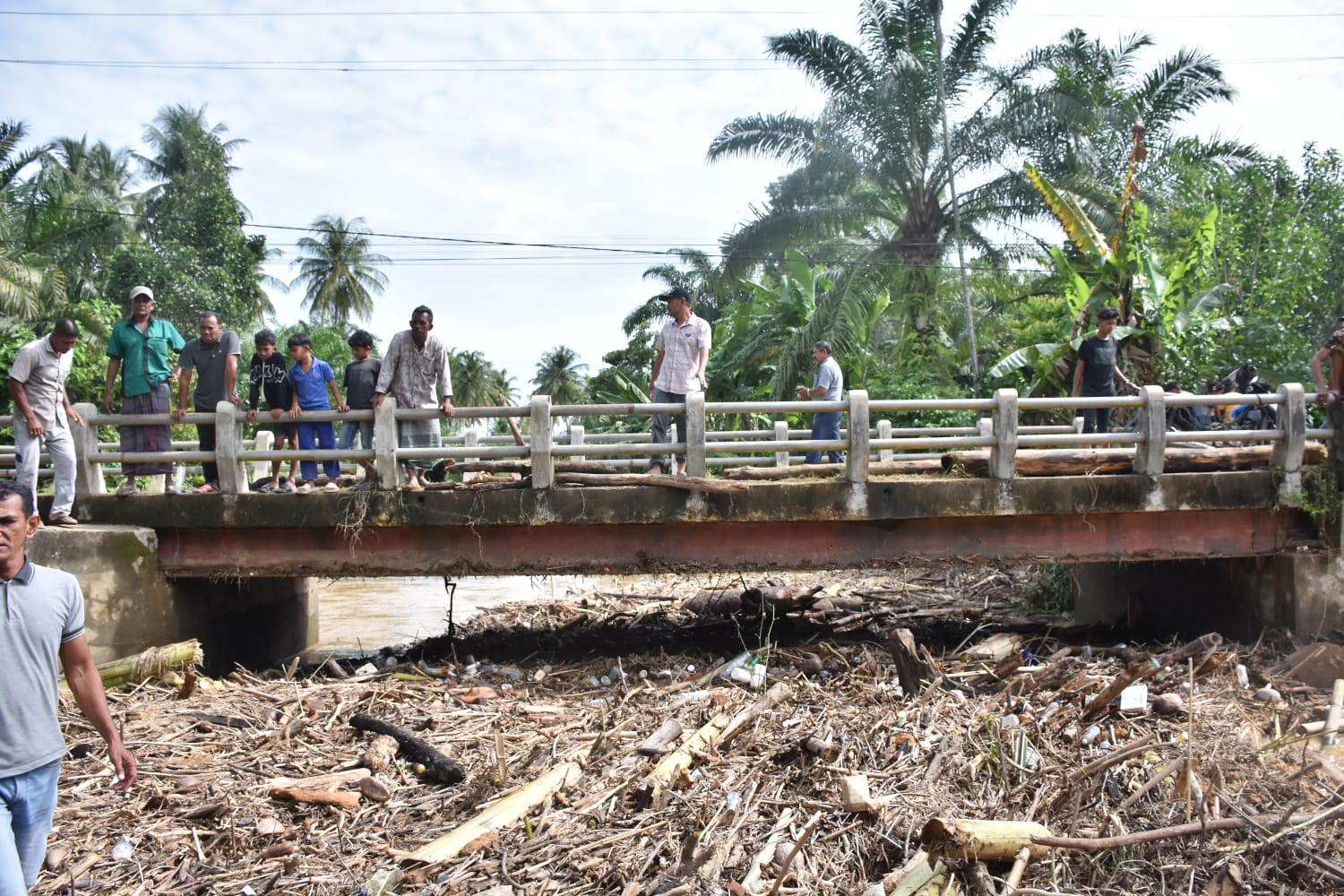 “Kami sangat mengharapkan alat berat datang hari ini untuk mengangkat tumpukan kayu di bawah jembatan. Kalau dibiarkan, banjir bisa terulang lagi jika hujan turun,” tegasnya.