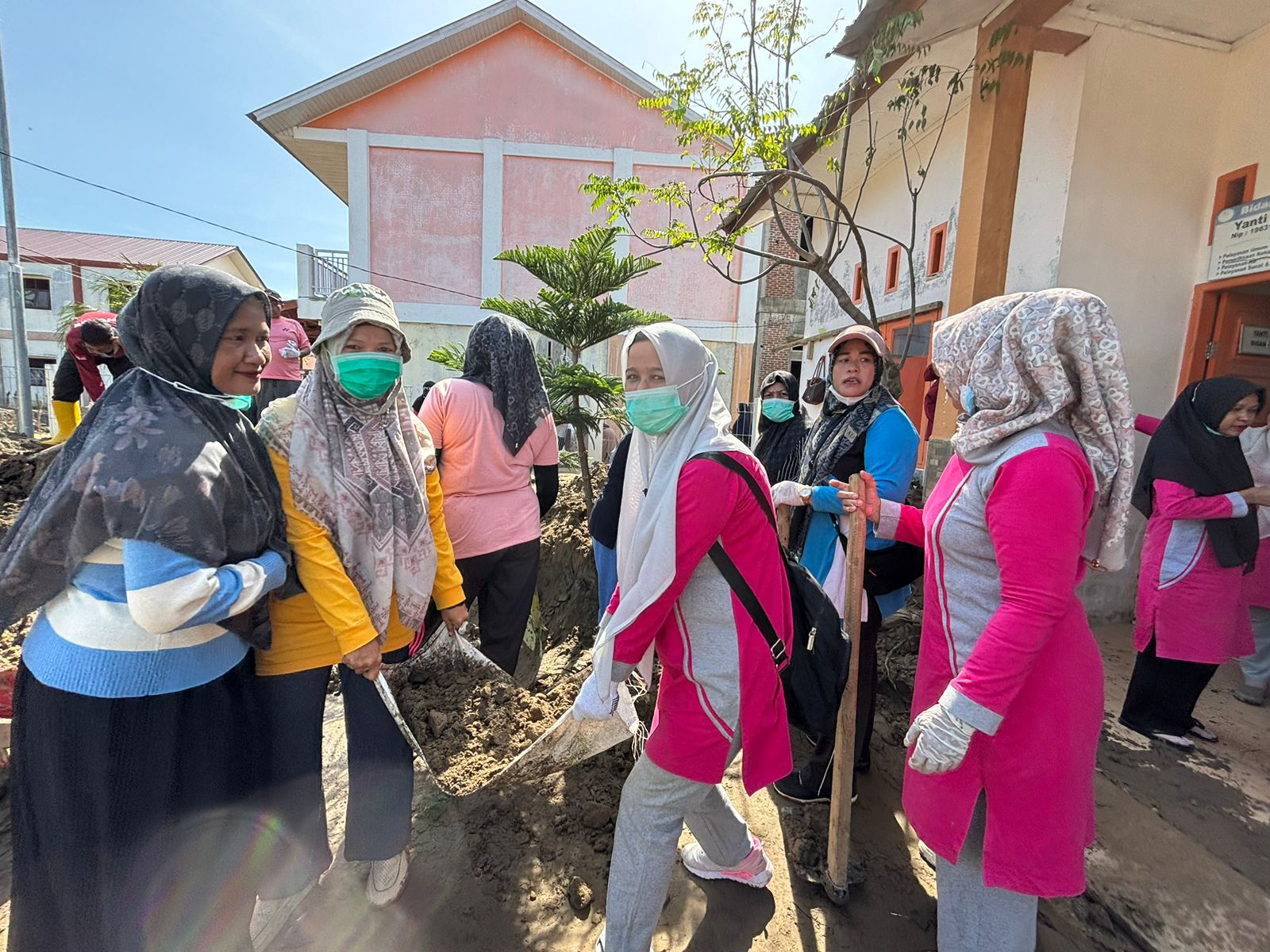Sebagian tenaga medis tampak mencangkul lumpur ke dalam kereta sorong, sementara lainnya menggunakan cara sederhana namun efektif, yakni mengumpulkan lumpur di atas spanduk bekas untuk kemudian ditarik bersama-sama keluar dari kompleks Polindes.