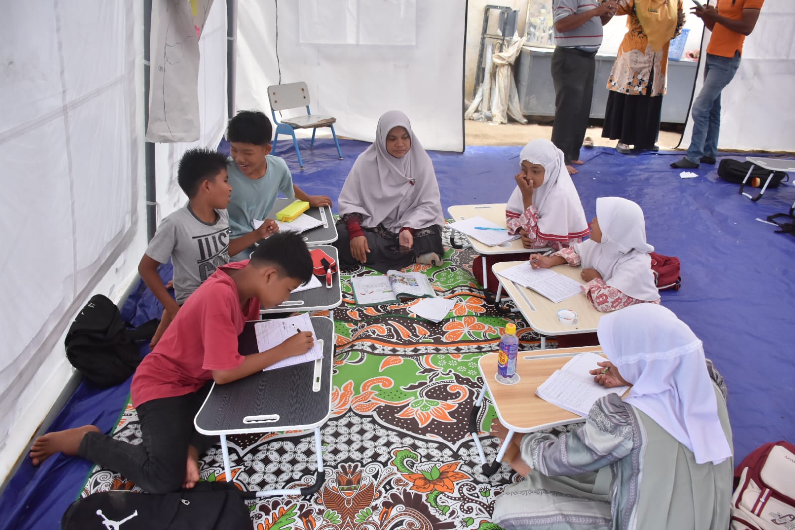 Meski dihadapkan pada kondisi serba terbatas, kegiatan belajar tetap berjalan di bawah bimbingan guru masing-masing kelas. Sejumlah relawan juga terlihat hadir memberikan pendampingan trauma healing kepada para siswa guna membantu pemulihan kondisi psikologis mereka pascabencana.