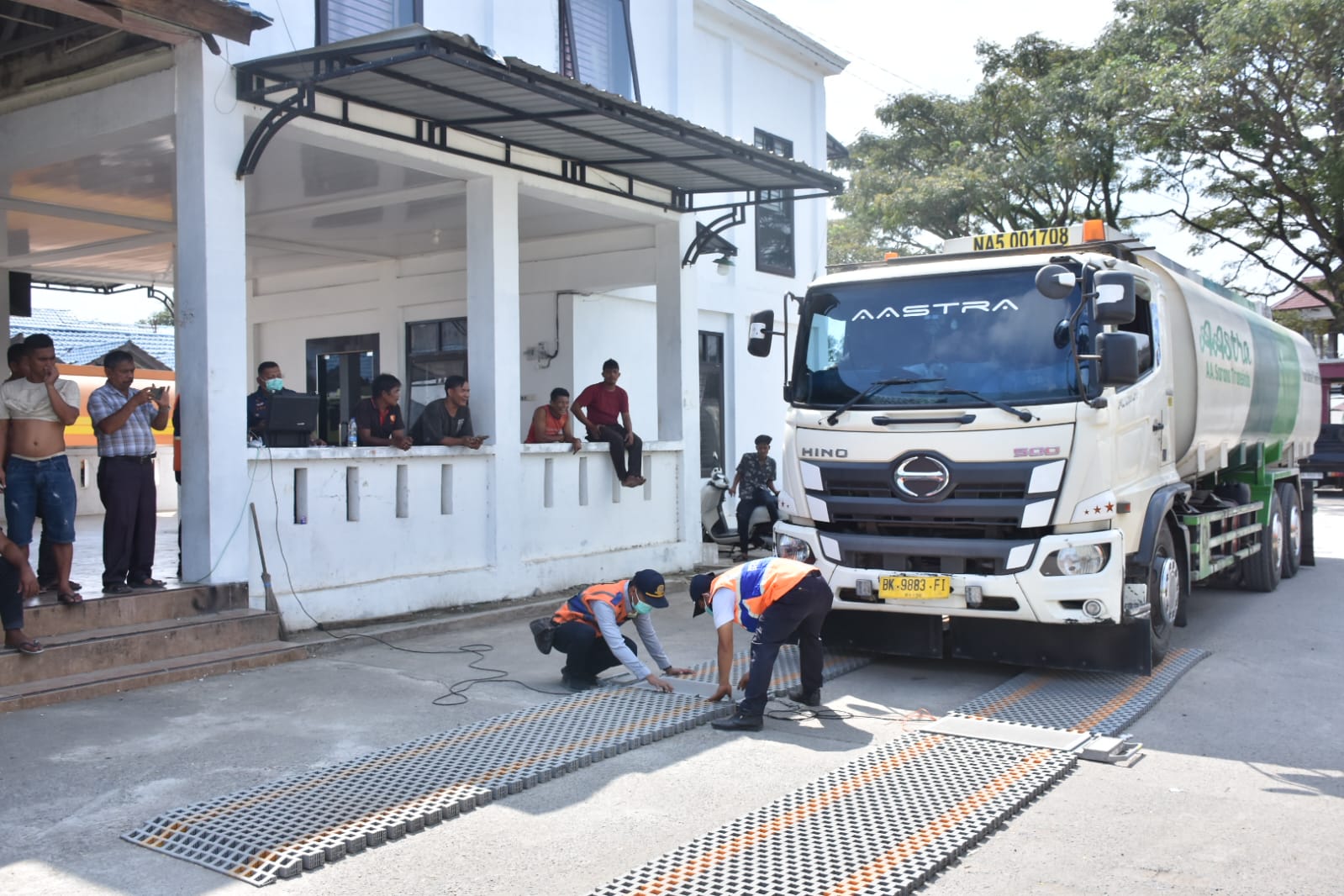 Penimbangan ini dilakukan untuk memastikan berat kendaraan sesuai ketentuan sebelum melintasi jembatan bailey Kutablang yang memiliki batas maksimal tonase, yakni 30 ton, demi menjaga keselamatan pengguna jalan dan keawetan infrastruktur.