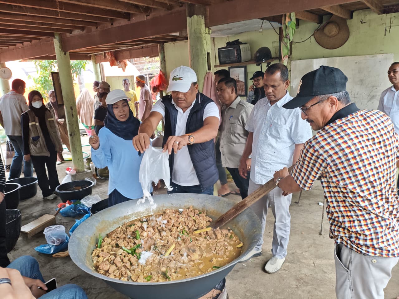 Pantauan di lokasi, Bupati Mukhlis tampak luwes berinteraksi dengan warga. Ia memegang sodet, mengaduk daging dalam kuali besar, serta ikut meracik bumbu tradisional Aceh bersama ibu-ibu pengungsi. Canda ringan yang tercipta di dapur umum seolah mencairkan suasana haru yang kerap menyelimuti kehidupan di pengungsian.