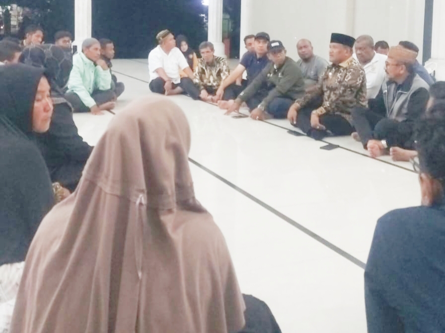 Di sela-sela sahur, Mukhlis berdialog secara langsung dengan warga untuk mendengarkan berbagai keluhan dan kebutuhan mereka yang telah beberapa hari bertahan di tengah keterbatasan fasilitas pengungsian.