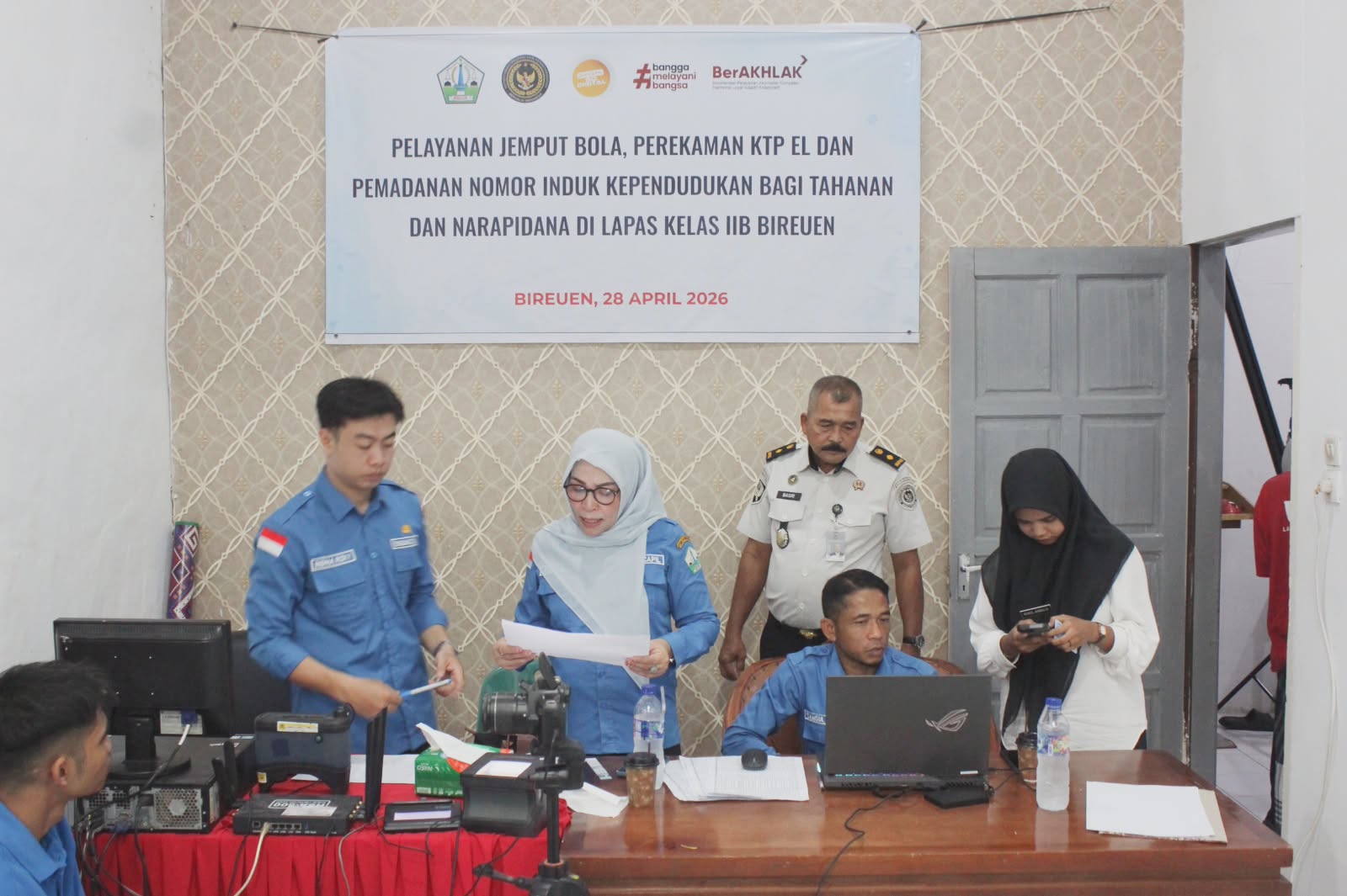 BIREUEN, BEDAHNEWS.com – Lembaga Pemasyarakatan (Lapas) Kelas IIB Bireuen terus memperkuat tertib administrasi kependudukan bagi Warga Binaan Pemasyarakatan (WBP) melalui verifikasi Nomor Induk Kependudukan (NIK) dan perekaman biometrik, Selasa (28/4/2026) pagi.