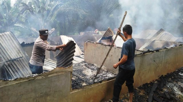 Respon Cepat, Kapolsek Idi Tunong Datangi Lokasi Kebakaran Rumah Warga