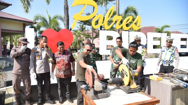 Polres Bireuen Musnahkan Puluhan Knalpot Bising Hasil Razia