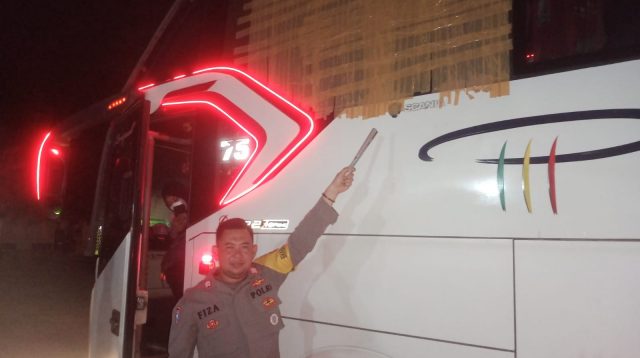 Polisi menunjukkan kaca bus Putra Pelangi yang nyaris pecah dan sudah di selotip agar tidak pecah melebar. […]