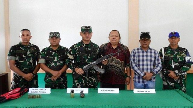 Mantan Kombatan GAM Serahkan Dua Buah Granat , Sepucuk Senjata Api AK 47 dan 12 Amunisi Kaliber 7,26 mm ke Kodim 0117/Aceh Tamiang